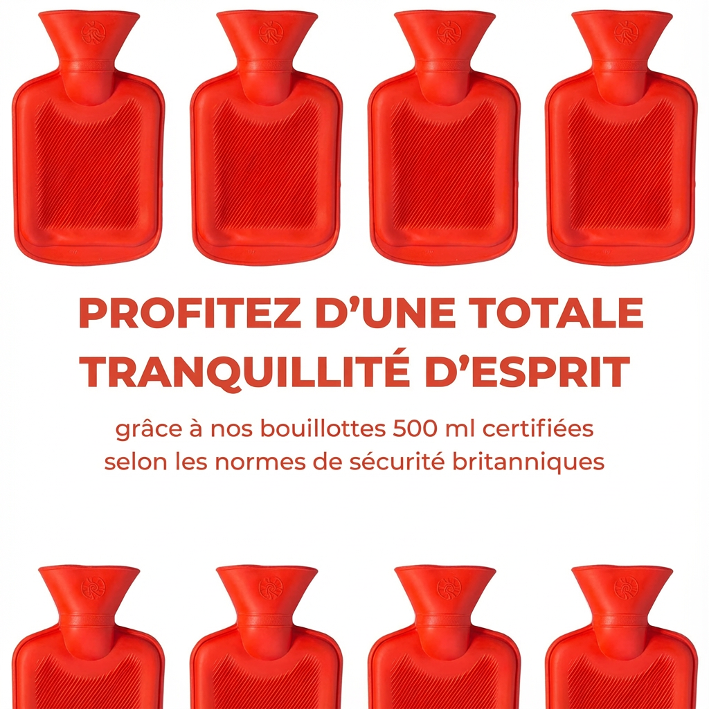 Nos bouillottes respectent les normes de sécurité britanniques, ce qui nous distingue de nombreuses alternatives bon marché qui réduisent les coûts au détriment de la sécurité — une pratique dangereuse.