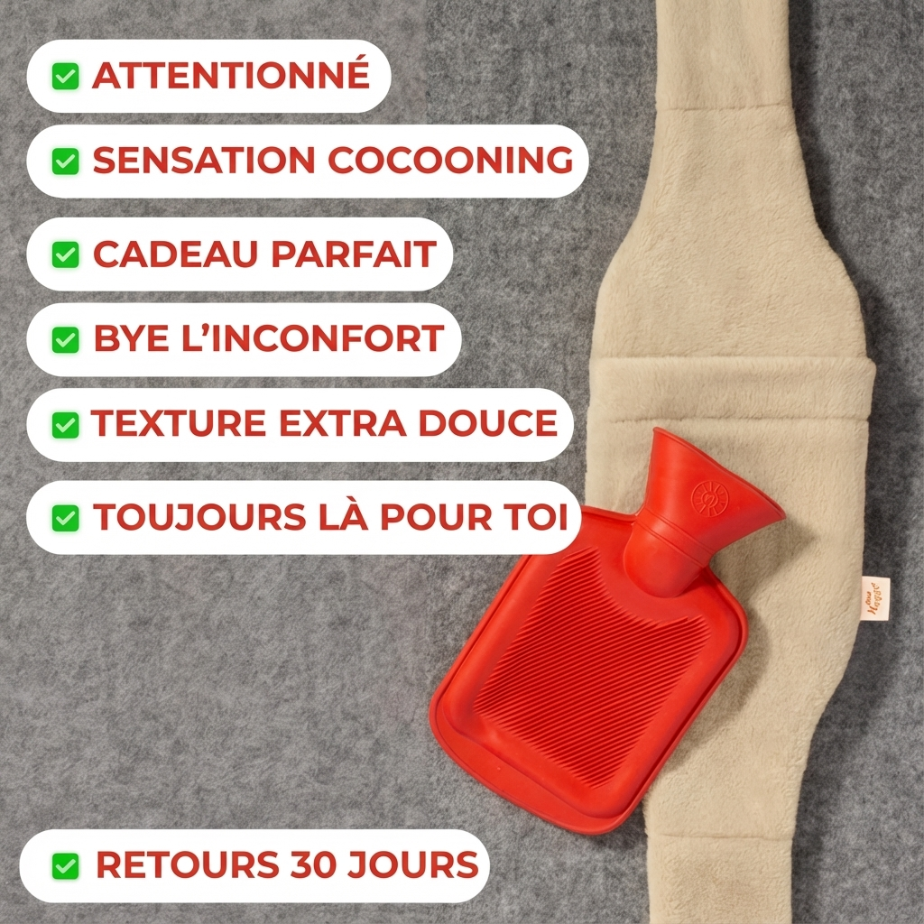 De plus, grâce à ses « bras » qui le maintiennent en place autour de votre taille, la chaleur reste piégée entre votre corps et le Hot Norya, ce qui lui permet de rester chaud bien plus longtemps qu’une bouillotte traditionnelle qui bouge et perd sa chaleur.