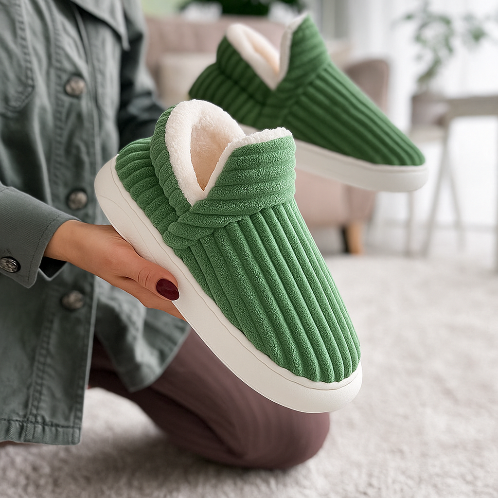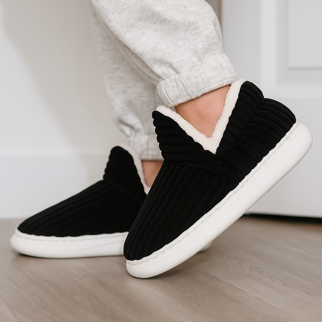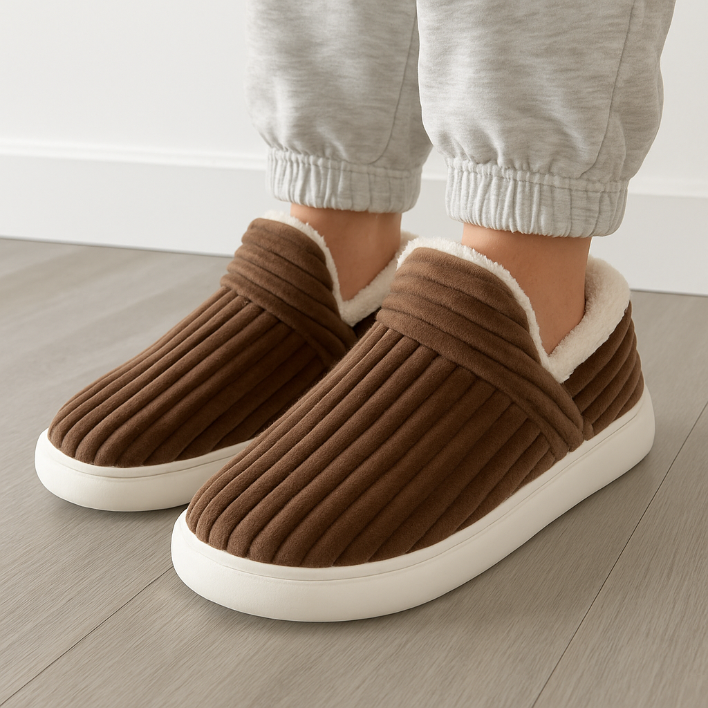 Les pantoufles Norya offrent un parfait équilibre entre confort, chaleur et praticité.
