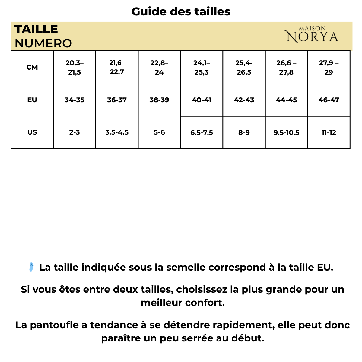 Oui. Choisissez votre taille habituelle. Pour les demi-tailles, nous recommandons de prendre la taille au-dessus pour plus de confort. Le matériau se détend légèrement après quelques jours et s’adapte parfaitement à la forme de votre pied.